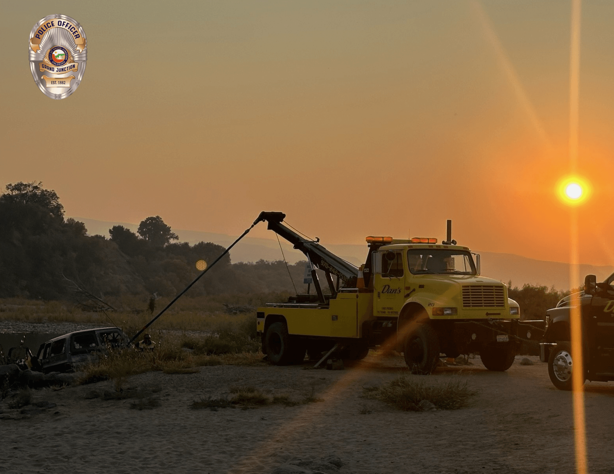Officers with the Grand Junction Police Department responded to reports of a truck in the river located in the area of the Las Colonias boat ramp on 10/05/24, at approximately 8:50 p.m. Reporting parties stated a male driver intentionally drove a truck into the river and then exited the vehicle and climbed onto the south riverbank. Dispatchers with the Grand Junction Regional Communications Center received a report shortly after from a person claiming to have seen a video of his stolen truck in the river. Personnel with the Grand Junction Police Department and Search and Rescue worked to recover the vehicle on 10/06/24. First responders do not believe there were any outstanding occupants in the vehicle, at this time. The Grand Junction Police Department has not yet located the driver and are investigating this incident. If anyone has any information about this incident, they are asked to contact non-emergency dispatch at 970-242-6707, reference GJPD case number 24-51019.