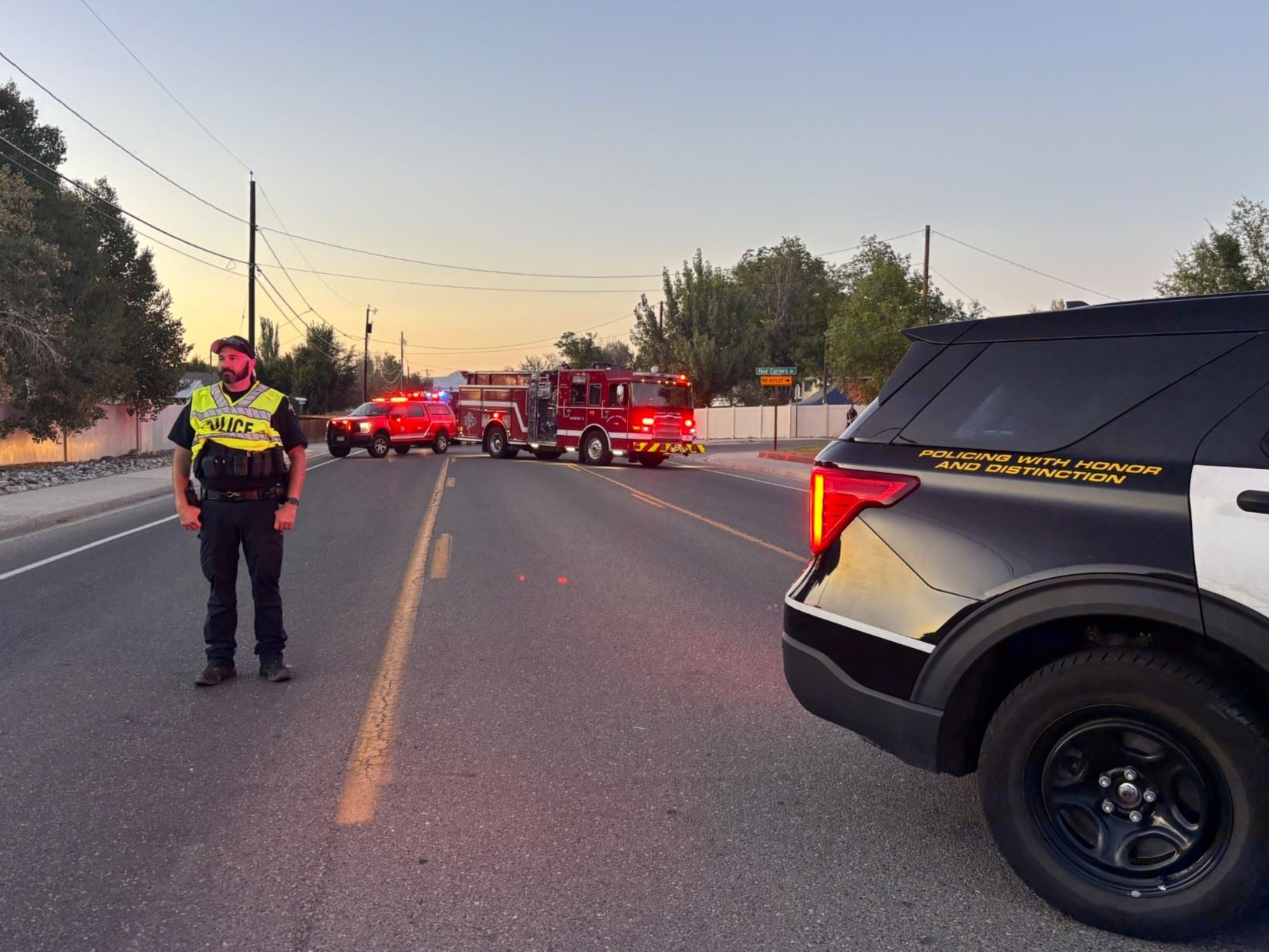 Through the course of investigation, officers learned that a truck traveling southbound on 29 Road was turning east onto Four Corners Drive when it struck a motorcycle traveling northbound.