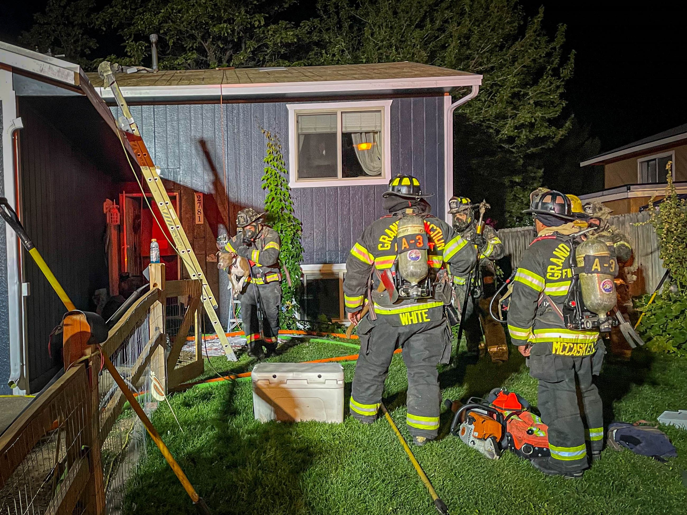 Grand Junction, CO – At approximately 9:09 p.m., the Grand Junction Fire Department (GJFD) responded to a reported house fire on the 2700 block of Lexington Court. The resident had called 9-1-1 to report flames in the attic.